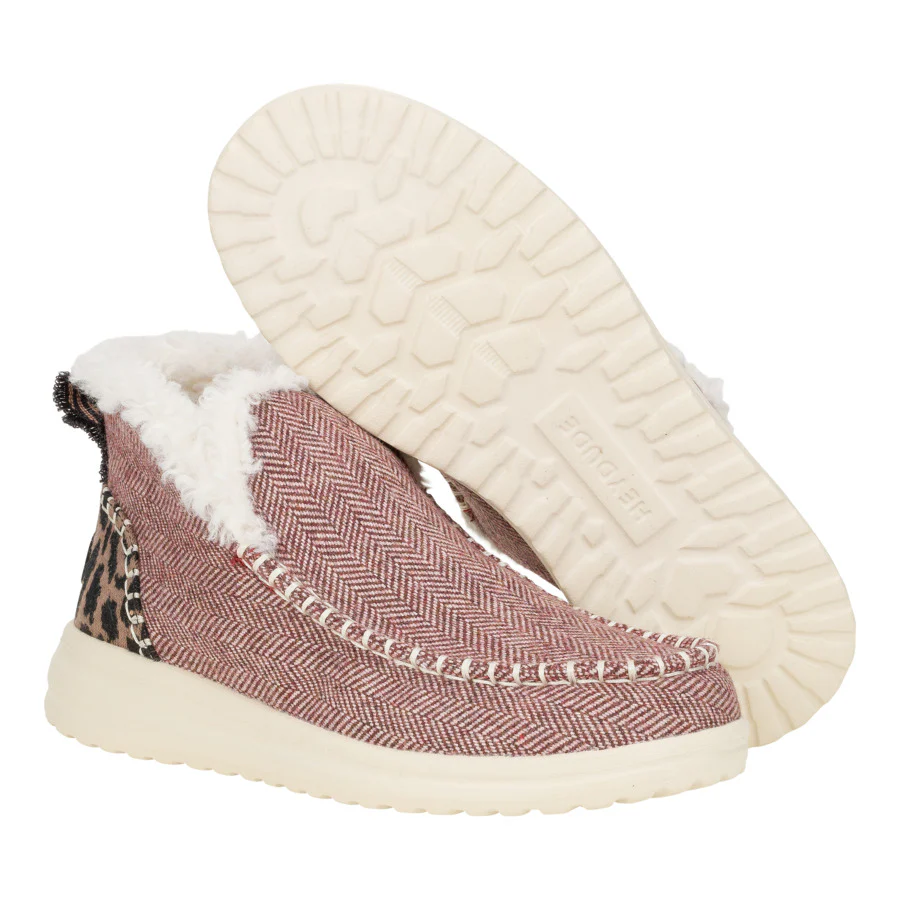 Like sticking your foot into a boot-shaped sweater, except it’s the Denny Leopard boot. Outsole so light and insole so snug. Pull-tab to help slide-on when your fingers get chilled.